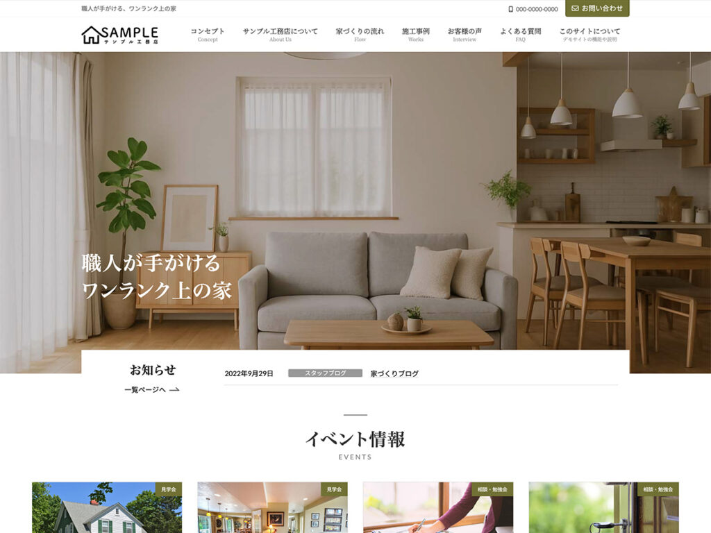 工務店のために設計された WordPress サイト。